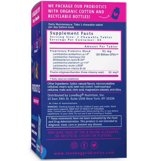 Kids Probiotic Chewable “Chew On This” was formulated with 6 powerful probiotic strains, to help improve your child’s digestive and immune systems. Plus, we’ve made sure to add prebiotic fiber to fuel the probiotic strains, so they can get to work on repairing and strengthening their gut health.